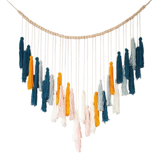 Somebody To Love: boho wall hanging in blue, gold & pink