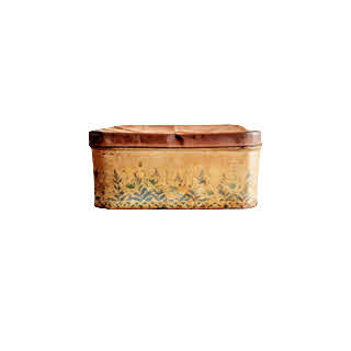 Description: A vintage tin box, ideal for collecting cards or displaying programs at a vintage or boho wedding. It's also a great kitchen prop for a home staging project.
