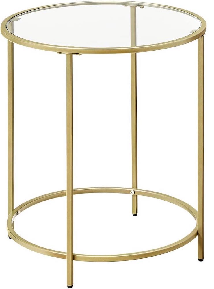 Description: Elegant and modern gold and glass end table. It coordinates with our Lennox coffee table.