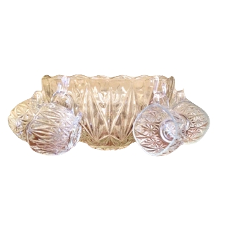 Description: A beautiful cut glass punch bowl with matching cups for your shower or party.
