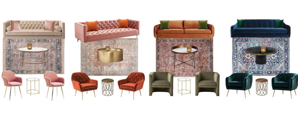 Description: A large package consisting of 4 modern lounge groupings, inspired by Bigger, Better, Faster, More! by 4 Non Blondes. Keep the ombre look or mix it up! Candles not included.