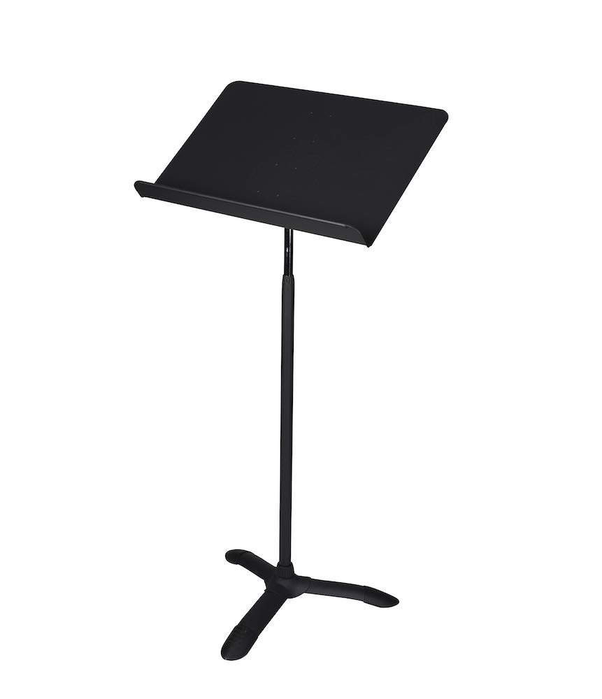 Description: A black music stand to prop up an event, home, or studio.
