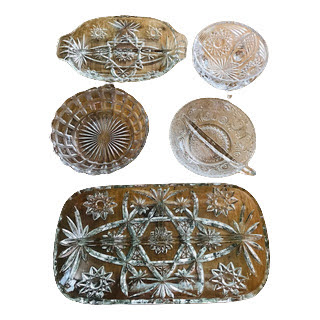 Description: Assorted small cut glass dishes are ideal for candy dishes, bar garnishes, or for spreads, etc... on the harvest table. Specify small round ones for dips. Rented by the piece. Specify quantity desired.