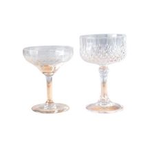 Description: Make a statement with vintage mismatched coupes! A vintage, yet timeless, alternative to the champagne flute. They also make gorgeous cocktail glasses. Consider them for your welcome or signature drinks, or place them behind the bar for martinis. Rented by the piece. Specify quantity desired.