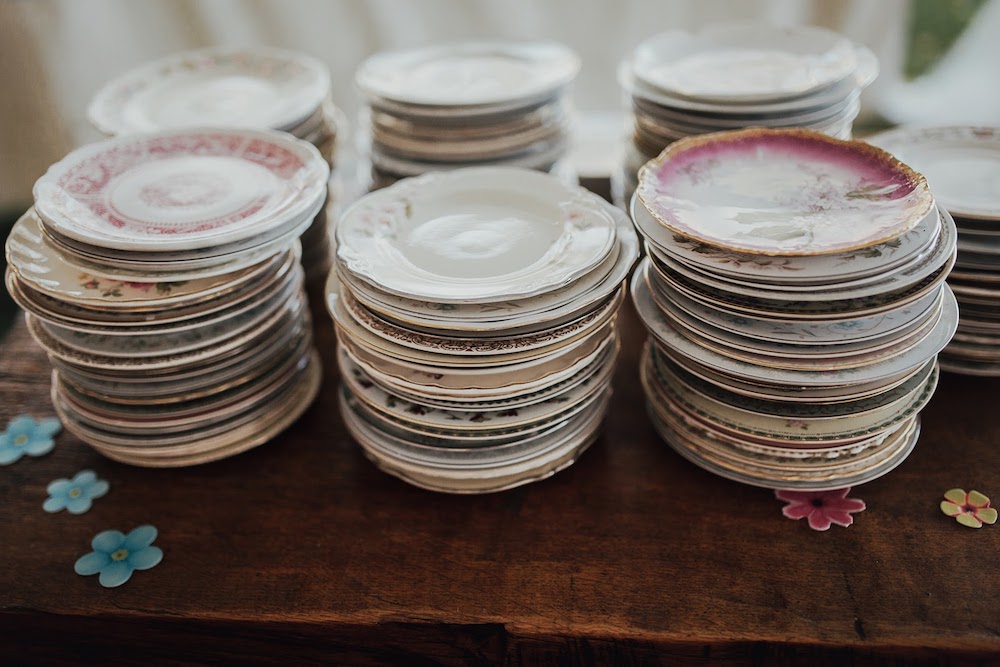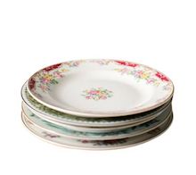 Description: Mismatched china B&B/dessert plates, generally about 6" in diameter. They come in assorted colors and patterns, many of them floral and pastel. Increase the quantity to use for bread & butter, cocktail hour, and cake! Rented by the piece. Specify quantity desired.