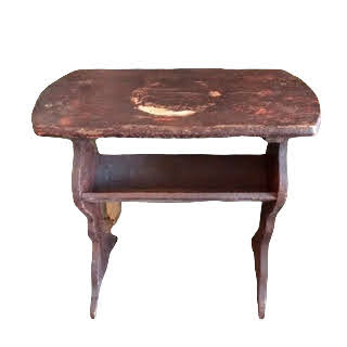 Description: A little rustic wooden table that works as a lounge end table or accent table for pretty much anything.