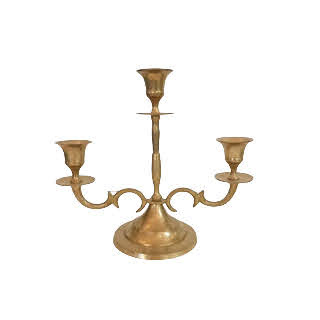 Description: A sweet, smaller brass candelabra with 3 candle holders. Use it as part of a centerpiece or mantle decor. It looks lovely among assorted brass candlesticks. Candles not included.