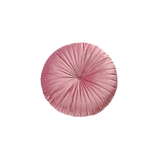 Description: A mauve, round, velvet pillow.