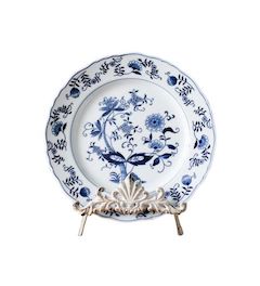 Description: Mismatched blue & white china consisting of transferware and a variety of blue and white floral patterns. At about 8" in diameter, these work well for both salad and dessert. Rented by the piece. Specify quantity desired.
