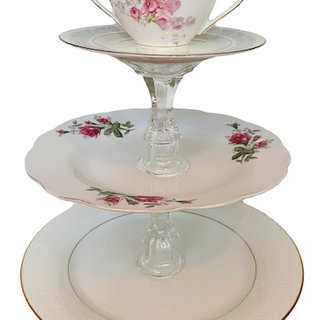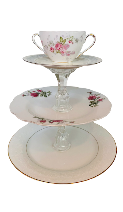Description: Assorted tiered servers make a statement on a dessert table. They come in a variety of colors and china patterns. Use them to display cupcakes, cookies and whatever your heart desires! Rented by the piece. Specify quantity desired.