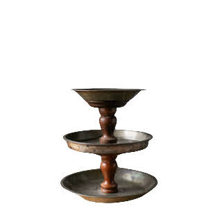Description: A handmade tiered server, adorable and perfect for a dessert display, harvest table, or even raw bar.