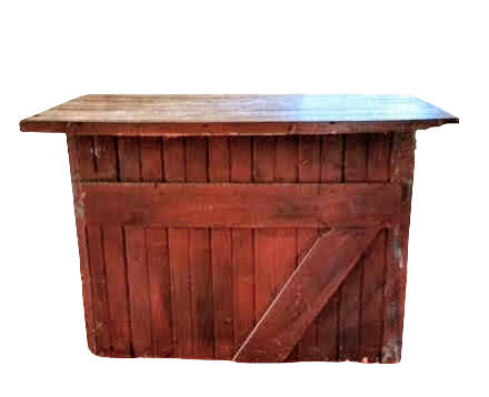 Description: A rustic wooden bar, dark reddish brown in color, that will work for any style event, whether rustic barn, classic tented, you name it! Consider it for welcome drinks or specialty cocktails.