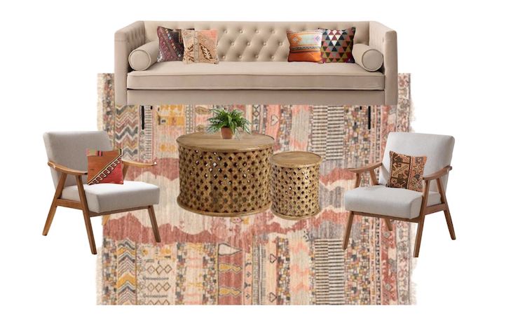 Description: A boho , multicolored lounge package with texture, inspired by John Lennon's Imagine album.