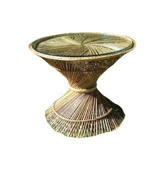Description: A rattan end table with glass top is the perfect addition to your boho or tropical lounge!