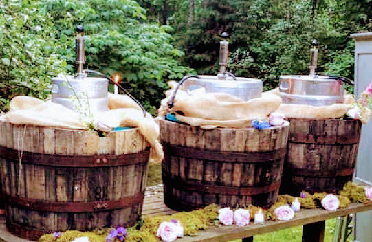 Tags: welcome drinks, barrel, bar, self-serve, bbq, rustic, general store, vessels