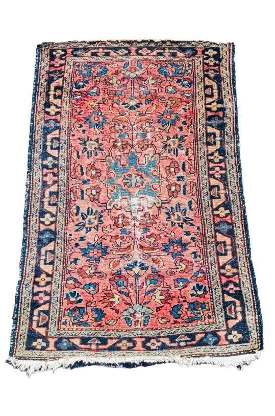 Little Sister: small vintage rug in red/pink & blue