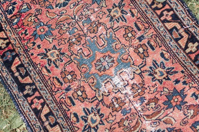 Description: A small, vintage rug. It's perfect for a small vignette or layered rug look. Or add it to your ceremony aisle!