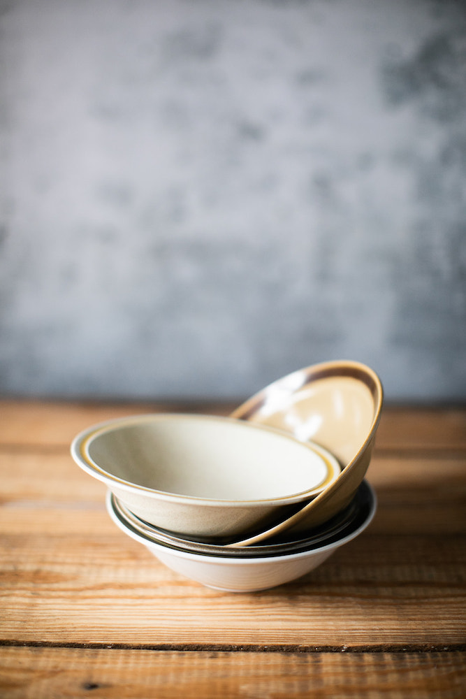 Description: Our Garden Festival collection consists of mismatched stoneware that is colorful, retro and fun! Most bowls have a beige/neutral base with colored trim. Rented by the piece. Specify quantity desired.