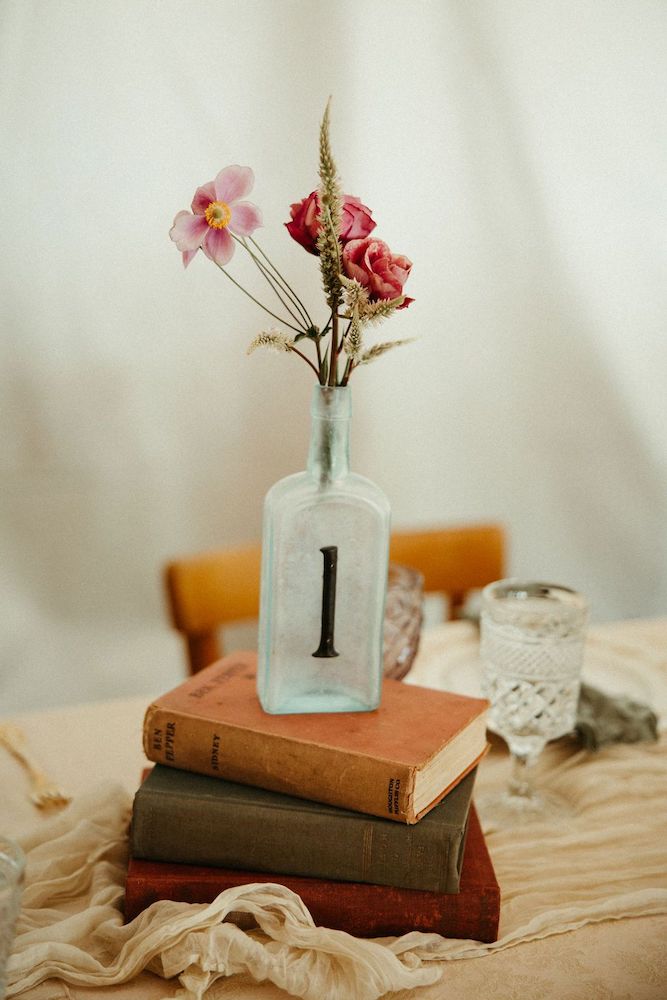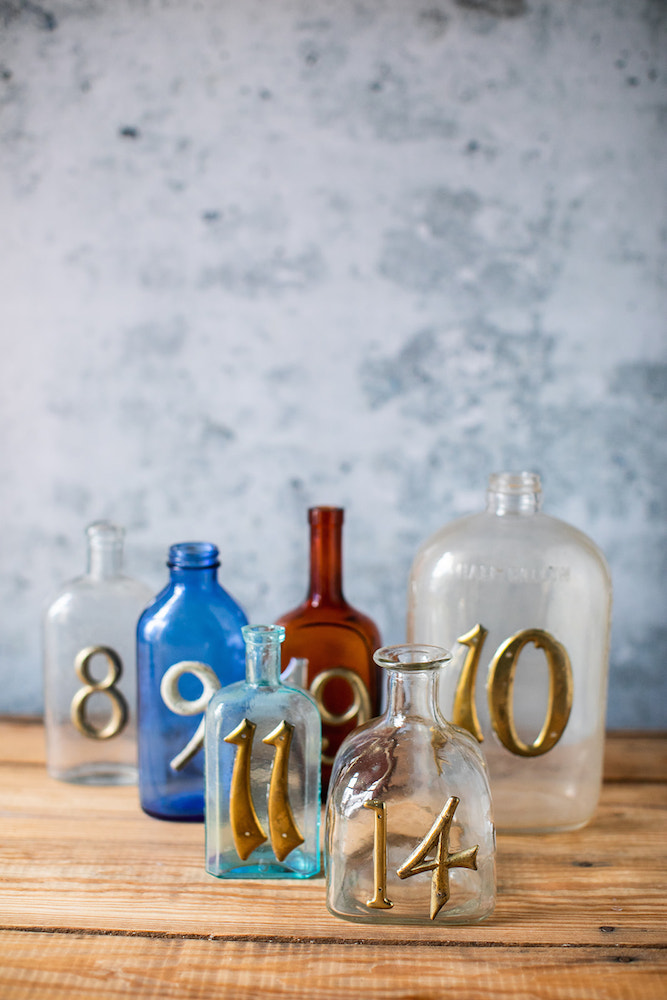 Tags: centerpieces, table numbers, signage, vintage, bottles, vessels