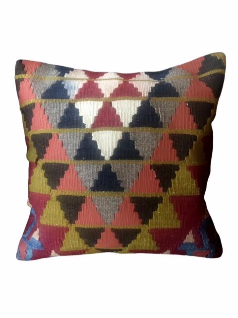 Description: A multi-colored Turkish kilim pillow.