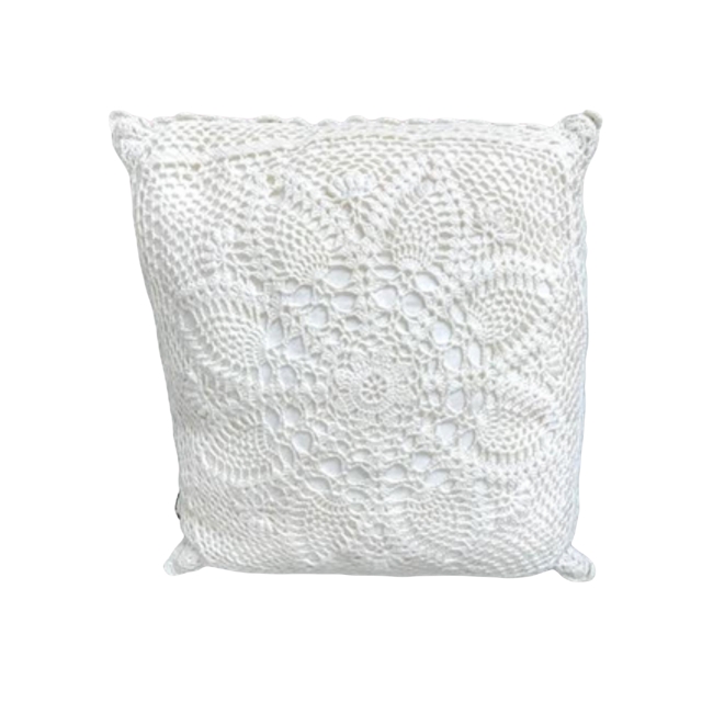 Description: An adorable doily pillow that brings a "Grandma Glam" vibe to your lounge.