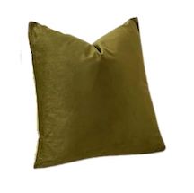 Description: An olive green velvet pillow, a natural beauty.