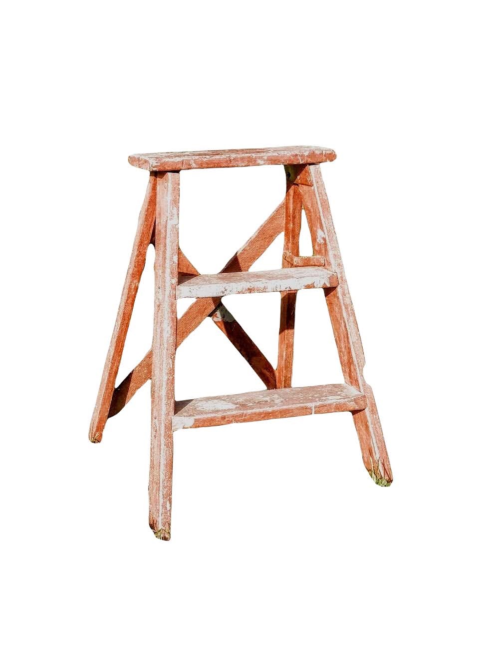 Description: This small, painted step ladder will give height to items on a table or bar. Consider it for the harvest table or other vignette.
