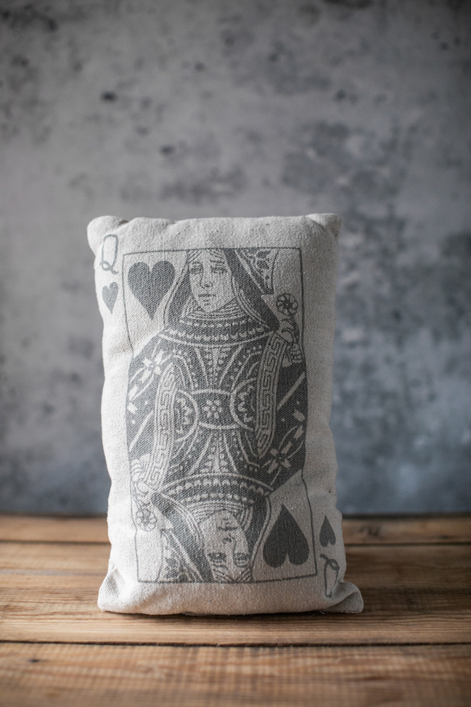 Description: A neutral pillow designed like a playing card. Think "Alice in Wonderland" theme.