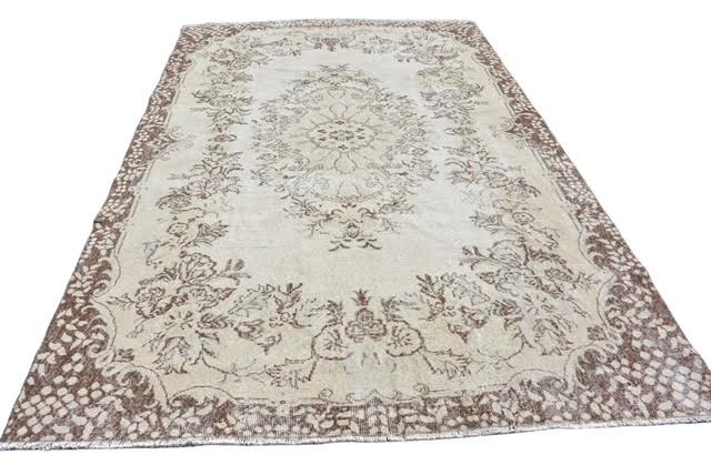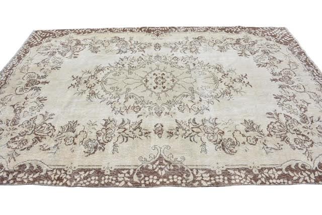Description: A large, vintage, neutral rug. An elegant choice for any lounge.