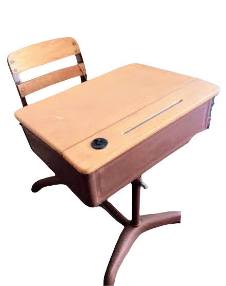 Description: A vintage school desk with attached chair. Use it to prop up a welcome vignette for a teacher's wedding. It's also a great prop for a school fundraiser, photo shoot, film or home staging project.