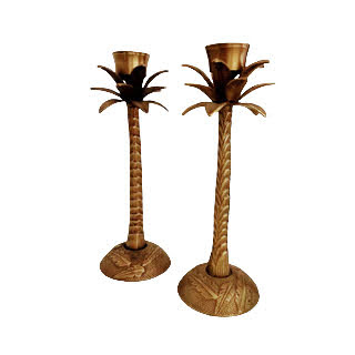 Description: Tall palm tree candlesticks, stunning and fitting for a tropical wedding or event. They coordinate well with assorted brass candlesticks. Candles not included.