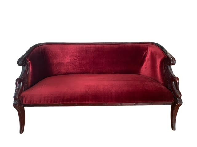Description: A gorgeous, red velvet beauty, this sofa will spice up your lounge or boudoir session! It's a holiday favorite, especially for family photo shoots.