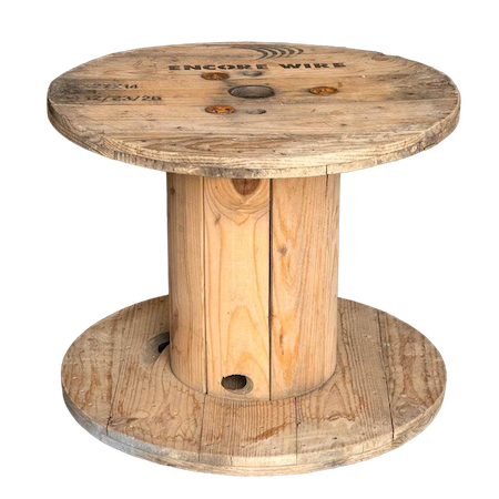 Description: A wooden spool that can serve as a small accent table, end table for a lounge, or stack it on top of a larger spool for a display.