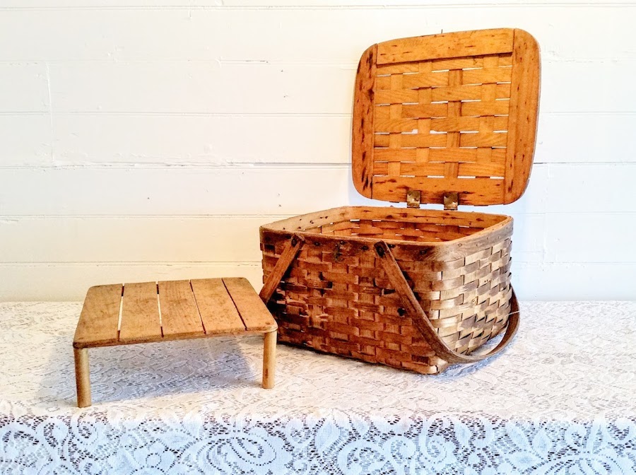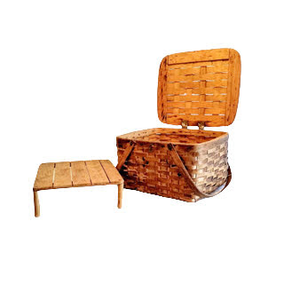 Description: A small picnic basket with lid. This small vessel can collect wedding cards or prop up your harvest table.