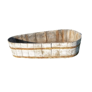 Description: A charming alternative to the traditional rubber tub for bottled beverages, this antique baby's bathtub is a conversation piece. Place it on the grass of an outdoor wedding near the bar or firepit for bottled beer, wine, seltzer, water, or whatever you're serving.