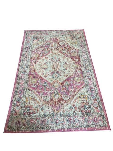 Description: A small area rug in shades of pink. It adds color to a small lounge, ceremony aisle, entry or kid's room.
