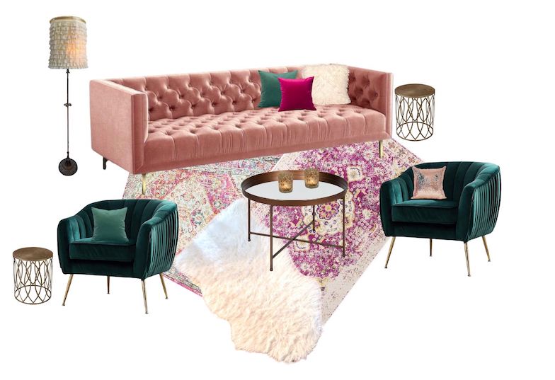 Description: A fun lounge package in pink and mint, inspired by Chappell Roan's The Rise and Fall of a Midwest Princess album. Candles not included.