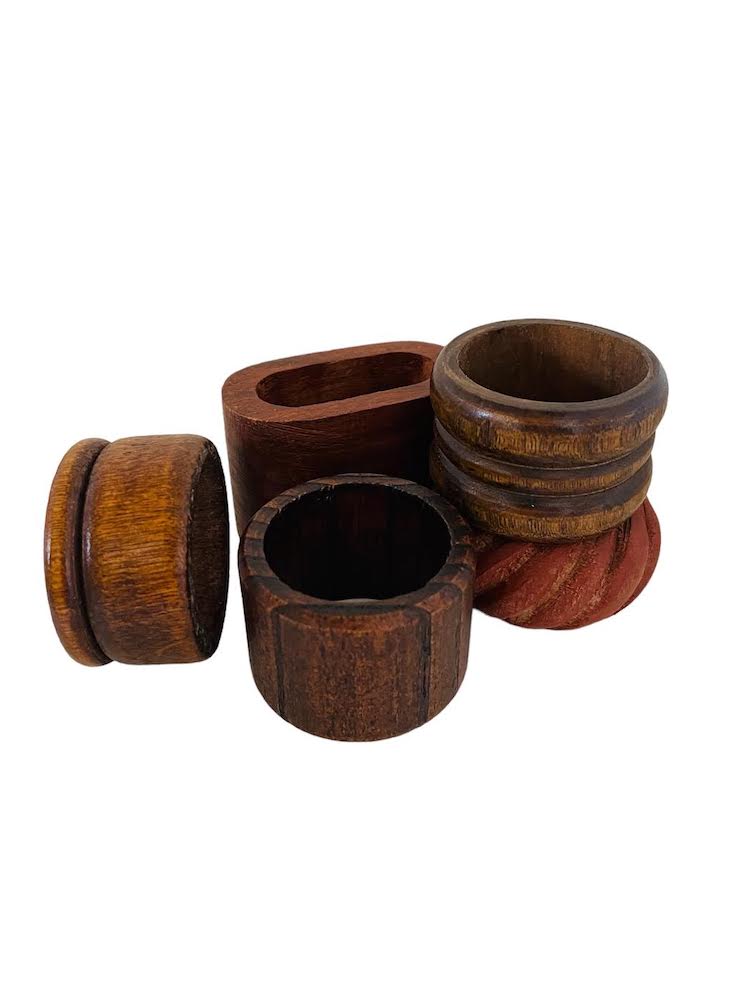 Description: Assorted wooden napkin rings, perfect for our Summertime napkins and/or as part of a natural tablescape with wooden candlesticks. Rented by the piece. Specify quantity desired.