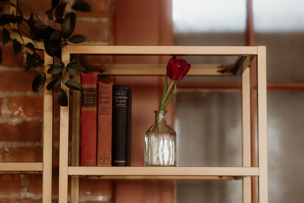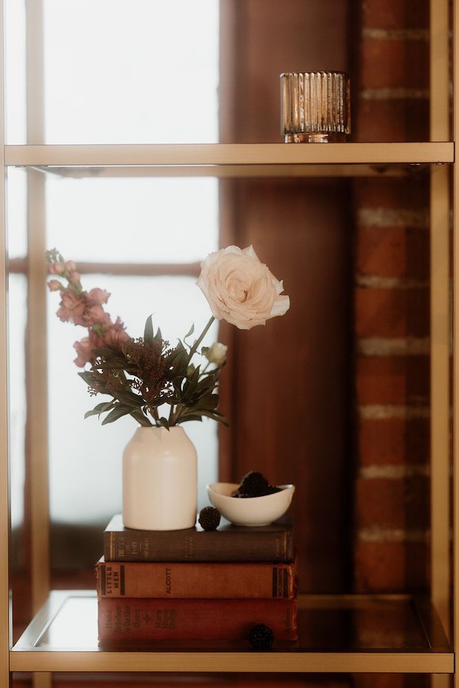 Tags: gold, home staging, etagere, welcome drinks, metallic, favors, shelving, gatsby, glam, back bar, modern, dining room, bookcase, elegant, brass