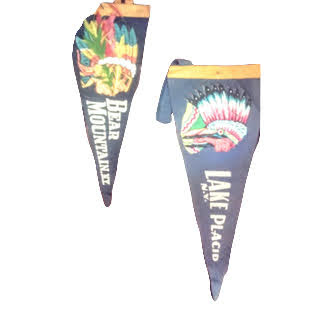 Description: Assorted vintage pennants from a variety of local and USA destinations. Use them to prop up a camping theme event or space. Rented by the piece. Specify quantity desired.