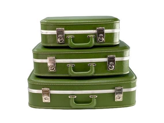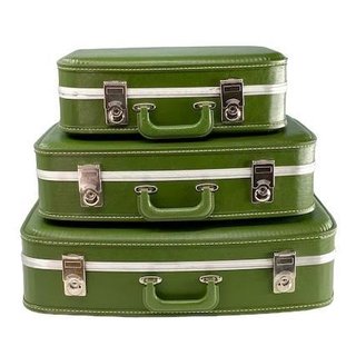 Traveling Wilburys: set of 3 vintage green suitcases