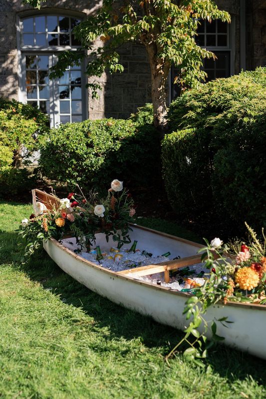 Description: A very large, vintage white canoe that coordinates with any decor. Fill it with ice and use it to serve bottled beverages such as beer, wine, water, seltzers, and/or drinks for the kids. Add our wooden spools with it to prop it up to the perfect height for guests to serve themselves.