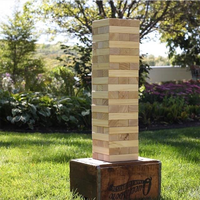 Description: This lawn Jenga starts at over 2.5 ft tall and goes to a max height of 5 ft during the game. It's the perfect size for indoor and outdoor fun, and it comes with a wooden crate/game table.